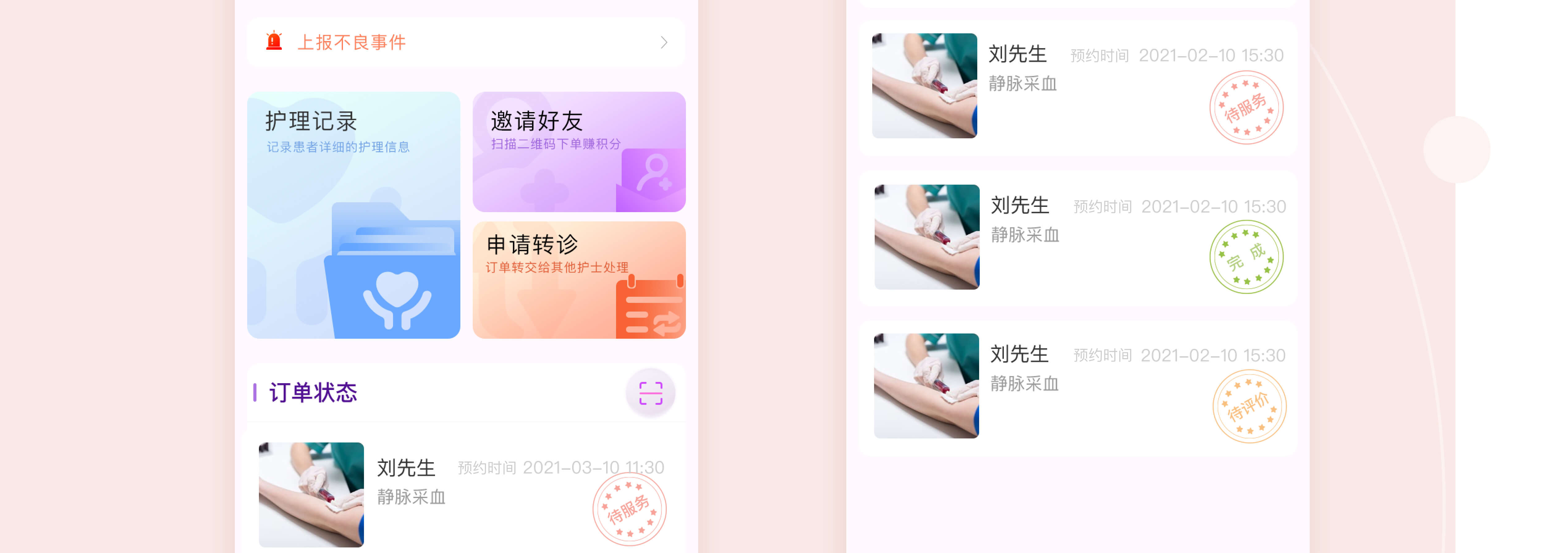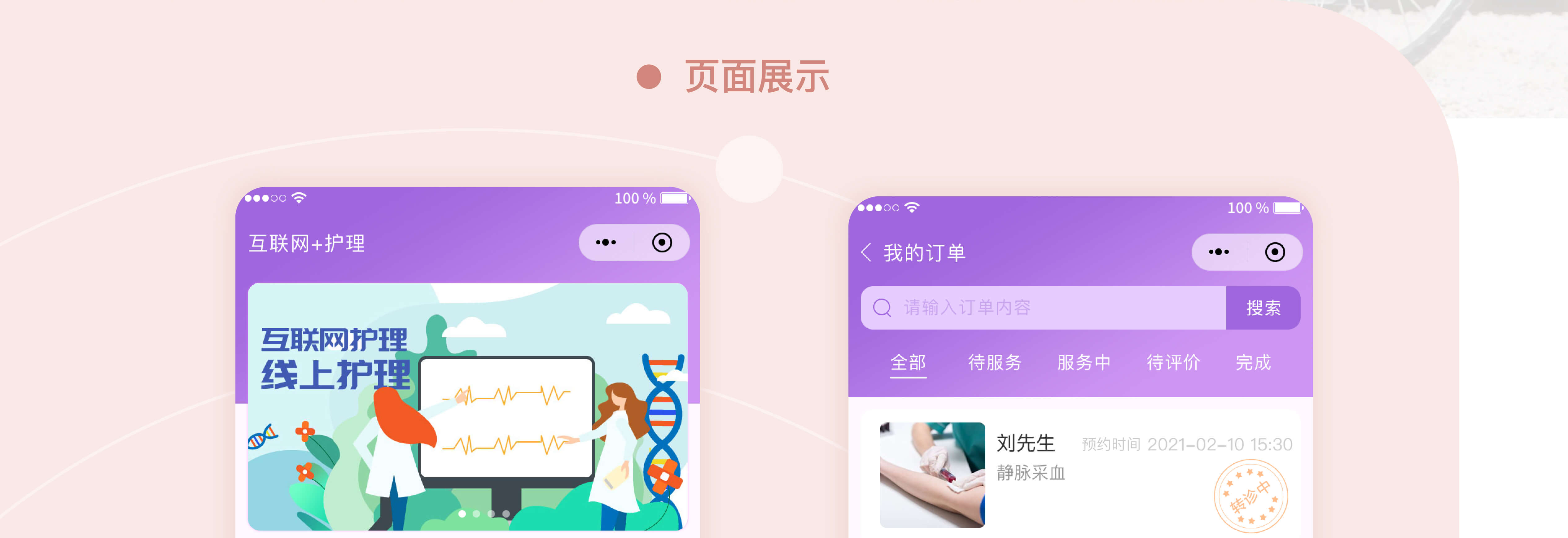设计理念:为出院患者或罹患疾病且行动不便的特殊人群提供高品质的居家护理服务。