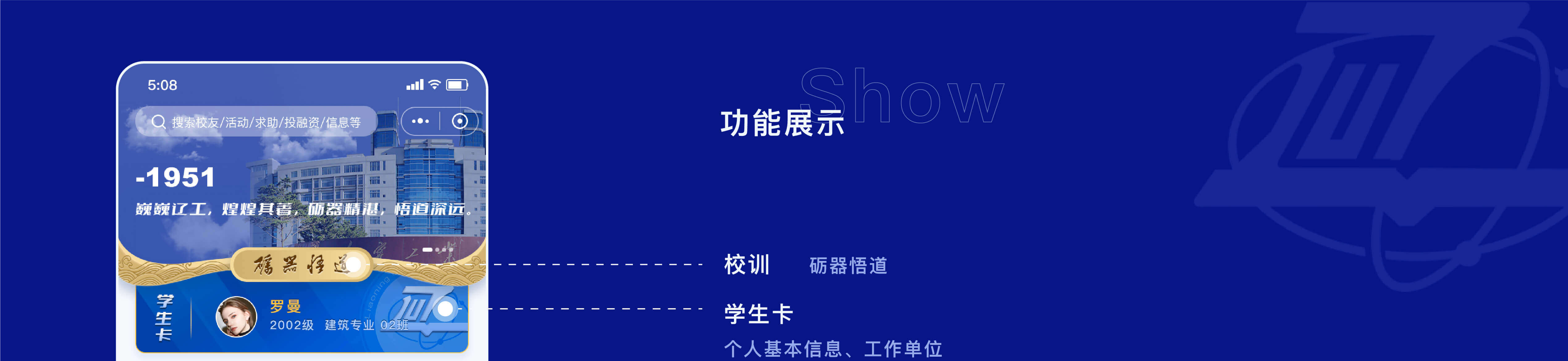 设计理念:人人为我,我为人人。让各地校友紧密相连,互帮互助,弘扬母校文明。
