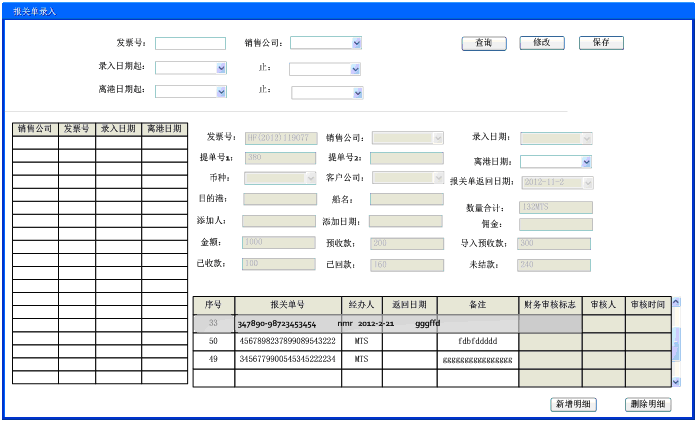 4、对于未审核的发票,离港日期可以修改,修改后,存储到发票资料档中。同时,对于发票的离港日期,建立一个修改记录档,可以报表查询。