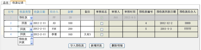 6、查询条件中的未审核,指的是,表头未审核或回款记录未审核。